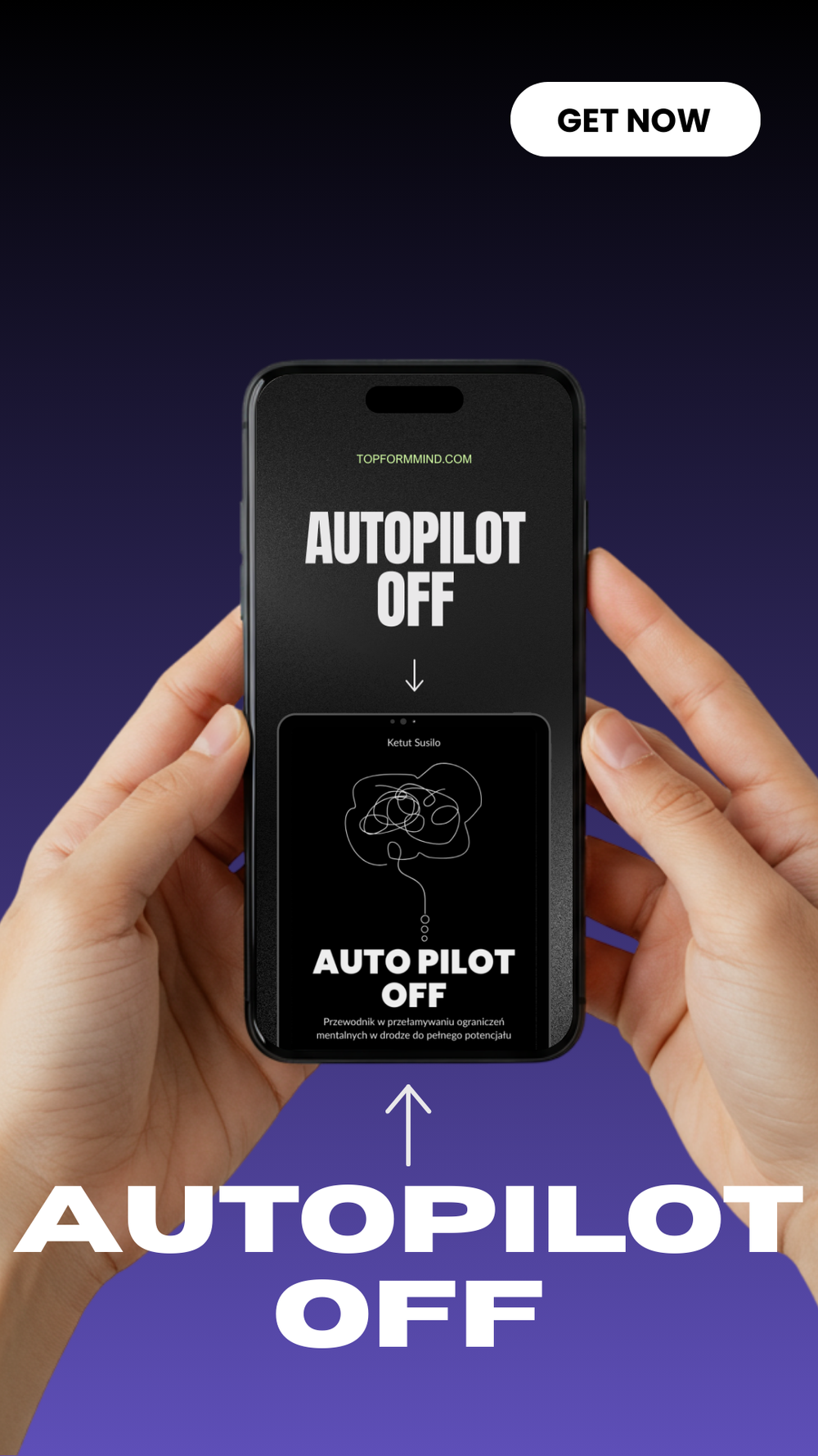 AutoPilotOFF to praktyczny e-book, który pomaga przejąć kontrolę nad własnym umysłem w zaledwie 7 dni. Został stworzony dla osób, które czują, że zbyt często działają na autopilocie, odkładają ważne sprawy na później i czekają na motywację, która nigdy nie przychodzi.